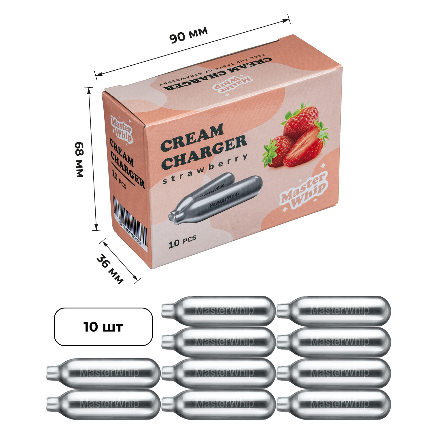 Баллончики для сливок (N2O) вкус клубника MasterWhip 50шт.