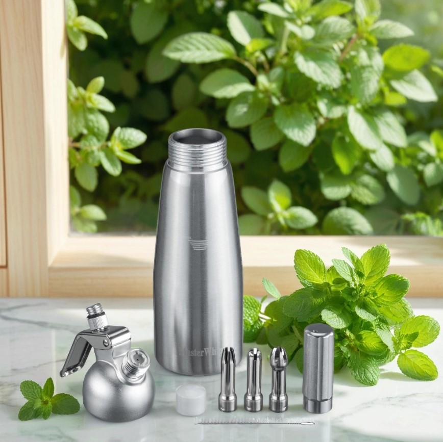 MasterWhip обладает компактными размерами и легким весом, что делает его удобным в использовании и хранении. Этот кухонный гаджет подходит как для профессионалов, так и для домашних кулинаров. Он позволяет легко приготовить не только взбитые сливки, но и различные муссы и кремы, добавляя изысканности вашим блюдам.