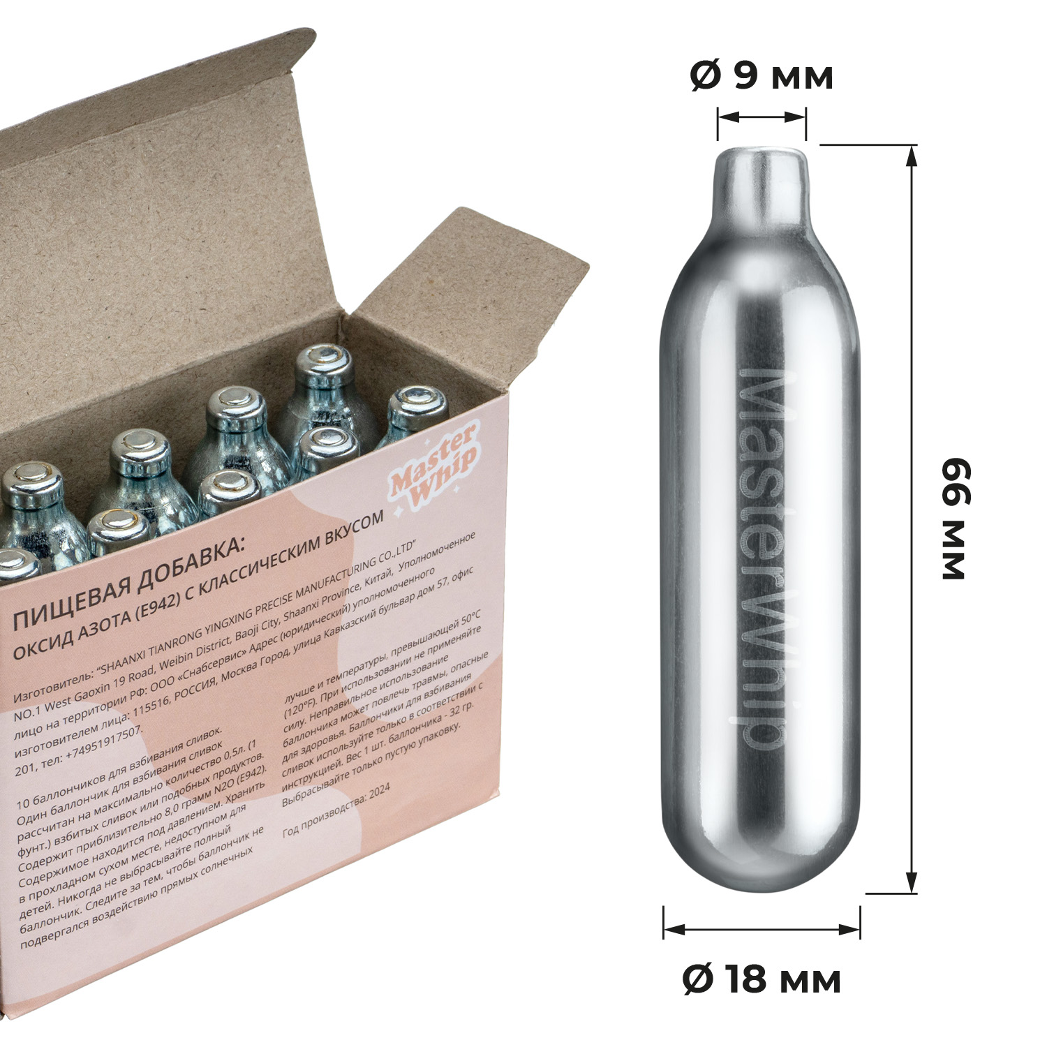 С MasterWhip вы сможете легко и быстро приготовить идеальные взбитые сливки, которые станут украшением вашего стола. Наслаждайтесь качеством и удобством с нашими баллончиками!